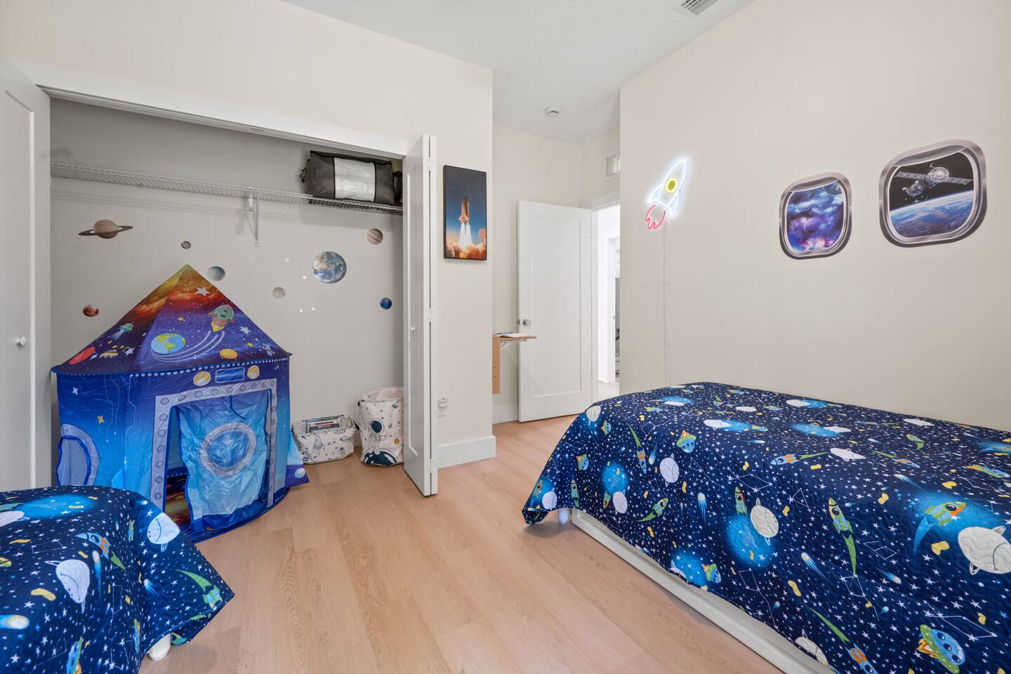Discover stylish comfort in this 3BR/2BA retreat near historic St. Augustine. With beautiful kitchen, king suites, a space-themed children’s room, and a fully fenced backyard, it’s perfect for families. Includes a Universal EV Charger. Minutes to beaches, dining, and downtown adventures—your luxurious launchpad awaits.