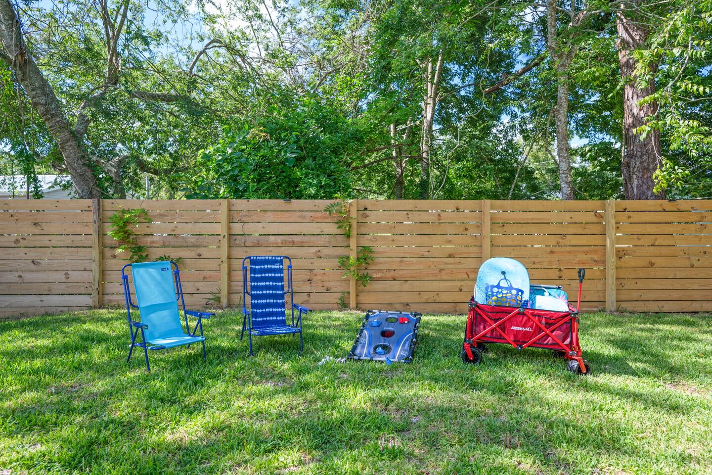 This home includes a fully equipped laundry room with everything you need for longer stays. The fenced backyard offers added privacy and space for outdoor fun, perfect for both kids and pets. Speaking of pets—we’re pet-friendly, and we’ve even provided a cozy dog bed so your furry friend can feel at home too! For convenience, automatic porch lights welcome you at sunset and turn off at sunrise, creating a warm entry no matter what time you arrive. And just a heads-up: a train passes through regularly, adding a quaint touch of local charm to the neighborhood. 🌟 Why Guests Love Staying With Us: 🆓Convenient access to the festivities—short drive Stylish, boutique-inspired interiors Pet-friendly amenities so your furry companions can join the fun